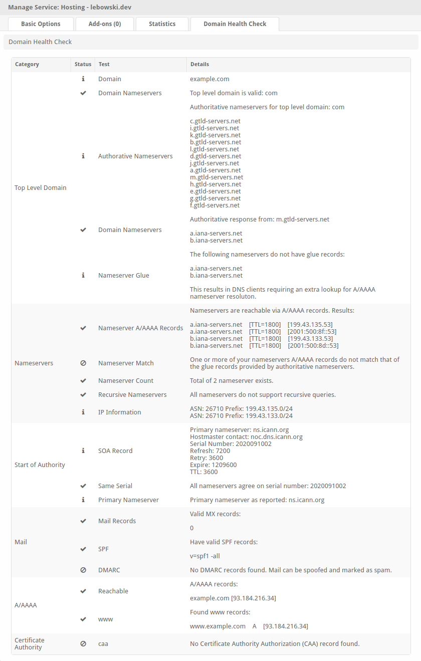 As a Blesta staff, they will be able to run health checks for all domains for shared or reseller accounts within the admin area